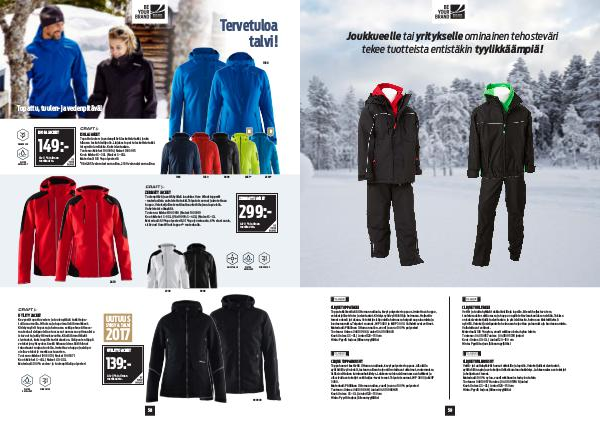 tuilla saumoilla. Hihoissa ja hupuissa lisälämmikkeet.