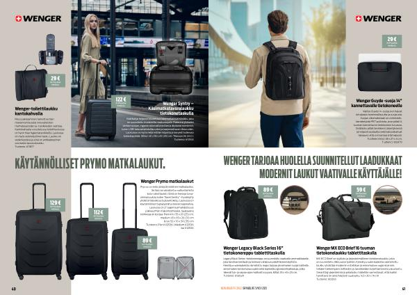 Laukussa on myös neljä erittäin hiljaista ja kevyesti kulkevaa kaksoispyörää. Mitat: 40 x 55 x 20( 25) cm. Tilavuus 36( 44) l.