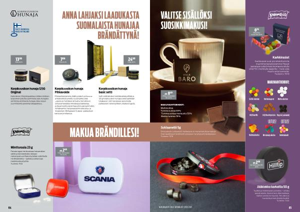 Setti sisältää kaksi mehiläisvahakynttilää ja 125 g Korpikuusikon hunajaa sekä tyylikkään lahjakassin. Voit halutessasi personoida pakkauksen vanerivyötteen yrityksesi logolla.