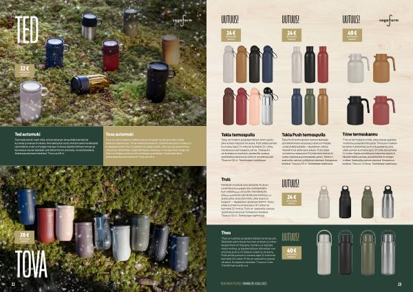 Ted matkamuki sopii niille, jotka haluavat aina pitää kylmää tai kuumaa juotavaa mukana. Kierrätetystä ruostumattomasta teräksestä valmistettu muki on helppo kantaa mukana käytännöllisen korvan ja kannessa olevan älykään työntötoiminnon ansiosta. Vuodonkestävä. Astianpesukoneen kestävä. Tilavuus 28 cl.