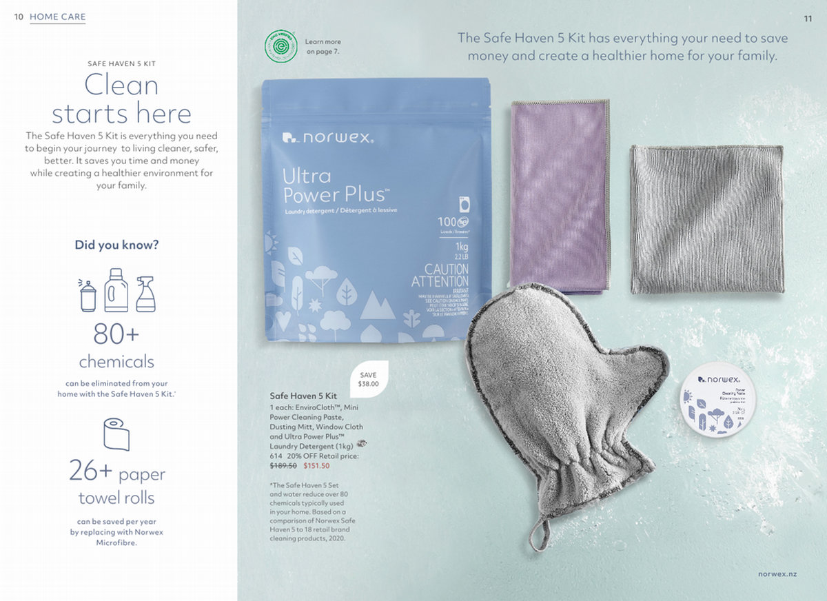 Safe Haven 5 Kit 1 each: EnviroCloth™, Mini Power Cleaning Paste, Dusting Mitt, Window Cloth and Ultra Power Plus™ Laundry Detergent( 1kg) 614 20 % OFF Retail price: $ 189.50 $ 151.50