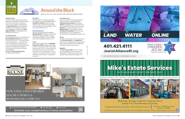 Good Afternoon Spend the latter half of the day shopping for various souvenirs, strolling through the Old Harbor Historic District, visiting the 1661 Inn or digging your toes in the sand at one of the island’ s pristine beaches. We recommend Ballard’ s for oceanside food / drink services, Mansion Beach for unparalleled scenery or Fred Benson Town Beach for fun in the sun. blockislandresorts. com; ballardsbi. com; blockislandinfo. com / maps / beaches-parks-map