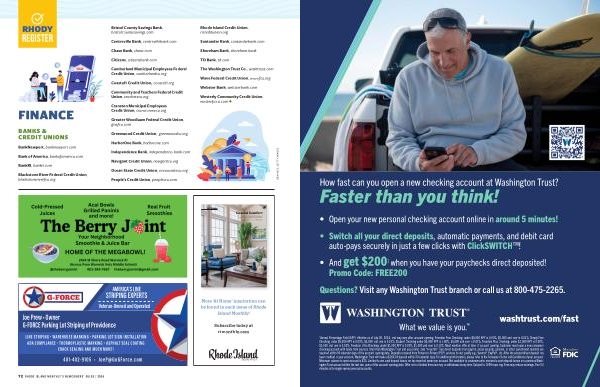 Annual Percentage Yield ( APY ) effective as of July 26 , 2024 , and may vary after account opening . Freedom Free Checking : under $ 5,000 APY is 0.00 %, $ 5,000 and over is 0.01 %; Simply Free Checking under $ 5,000 APY is 0.00 %, $ 5,000 and over is 0.01 %; Student Checking under $ 5,000 APY is 0.00 %, $ 5,000 and over is 0.01 %; Freedom Plus Checking : under $ 1,500 APY is 0.00 %, $ 1,500 and over is 0.05 %; Freedom Ultra Checking : under $ 1,500 APY is 0.00 %, $ 1,500 and over is 0.10 %. Must mention offer at time of account opening . Customer must open a new consumer checking account with funds from sources other than Washington Trust and use promo code “ Free200 ”. Two direct deposits from payroll , social security , pension , or other government benefits are required within 90 calendar days of the account opening date . Deposits received from Person-to-Person ( P2P ) services do not qualify e . g ., Venmo ®, PayPal ®, etc . After the second direct deposit has been credited to your account , Washington Trust will make a $ 200.00 deposit within 30 calendar days . For additional information , please refer to the Consumer Terms and Conditions of your account . Minimum balance to open account is $ 25 . Limited to one cash deposit bonus per tax reported owner per account . Not available to customers who received a cash deposit bonus on a previous Washington Trust account within the last two years of this account opening date . Offer is for a limited time and may be withdrawn at any time . Subject to 1099 reporting . Fees may reduce earnings . Five ( 5 ) minutes is for single-owner personal accounts .