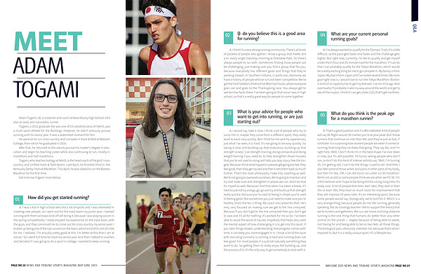 Adam Togami, 30, is a teacher and coach at New Albany High School. He’ s also an avid, and successful, runner.