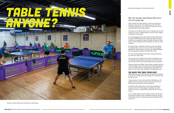 “ This is my church. It’ s right here three nights a week,” Banet says. The 1988 New Albany High School grad has hit at SITTA for more than 40 years, and has made coaching table tennis his profession.