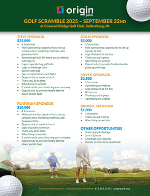 For more information, contact Avalon McAffrey: 812.463.3553 | originpark. org