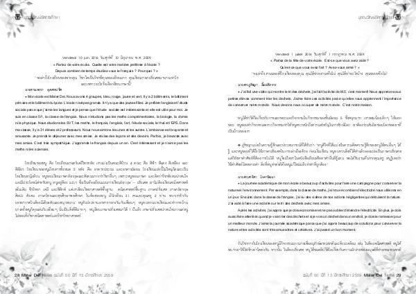 “จงเล่าถึงงานฉลองที่โรงเรียนของคุณ คุณได้ช่วยงานหรือไม่ คุณได้ทำ�อะไรบ้าง คุณชอบหรือไม่”