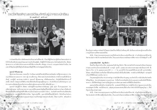 รางวัลเกียรติคุณเซอร์เวียมสำาหรับผู้ปกครองนักเรียน โดย คุณครูทีนามารี ผลาดิกานนท์