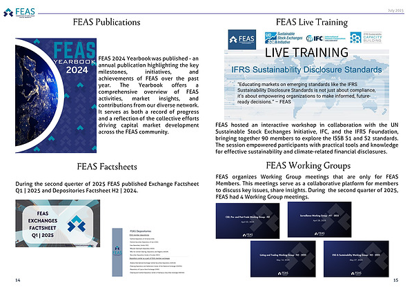 During the second querter of 2025 FEAS published Exchange Factsheet Q1 | 2025 and Depositories Factsheet H2 | 2024.