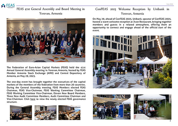 The Federation of Euro-Asian Capital Markets (FEAS) held the 41st Annual General Assembly meeting in Yerevan, Armenia, hosted by FEAS Member Armenia Stock Exchange (AMX) and Central Depository of Armenia, on May 29, 2025.