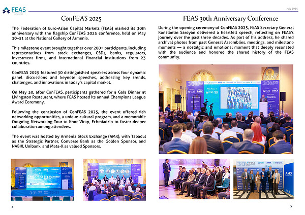 The Federation of Euro-Asian Capital Markets (FEAS) marked its 30th anniversary with the flagship ConFEAS 2025 conference, held on May 30–31 at the National Gallery of Armenia.