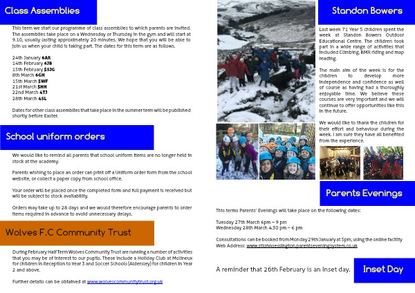 Consultations can be booked from Monday 29th January at 5pm, using the online facility Web Address: www.stjohnsessington.parentseveningsystem.co.uk