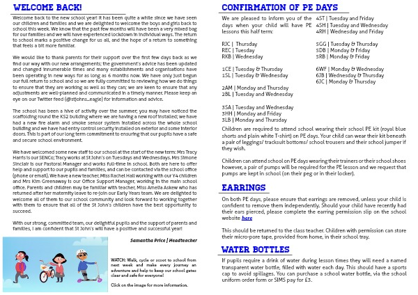On both PE days, please ensure that earrings are removed, unless your child is confident to remove them independently. Should your child have recently had their ears pierced, please complete the earring permission slip on the school website here