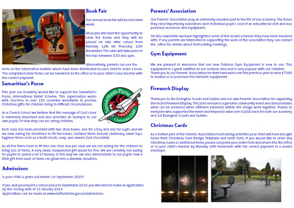 Thank you to the Essington Scouts and Guides and our own Parents’ Association for organising the recent Firework Display. This joint venture is a genuine community event and demonstrates what can be achieved when different elements within the village work together. Thanks to everyone who supported the event and helped to raise over £1000 each for both our academy and 1st Essington Scouts and Guides.