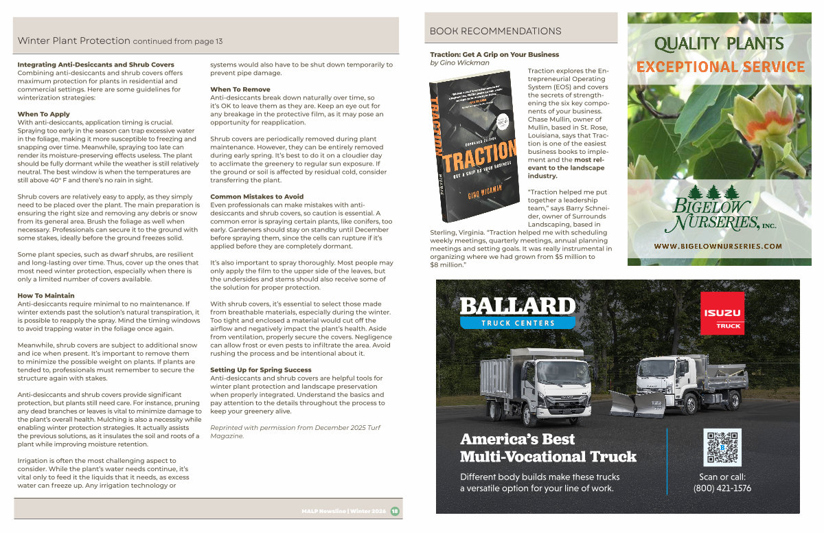 Setting Up for Spring Success Anti-desiccants and shrub covers are helpful tools for winter plant protection and landscape preservation when properly integrated. Understand the basics and pay attention to the details throughout the process to keep your greenery alive.