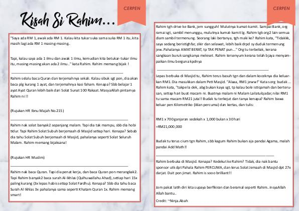 tidur. Tapi Rahim Solat Subuh berjemaah di Masjid setiap hari. Kenapa? Sebab