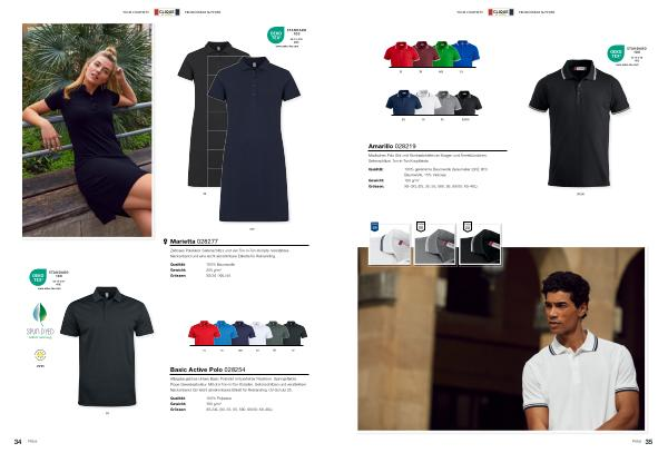 Baumwolle , 15 % Viskose ) Gewicht : 190 g / m 2 Grössen : XS – 3XL ( 00 , 35 , 55 , 580 , 95 , 99 / 00 : XS-4XL )