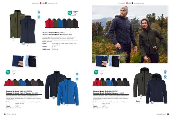 Polyester ; WP 5000 Gewicht : 315 g / m 2 Grössen :XS-4XL Grössen Damen :XS/ 34 – XXL / 44