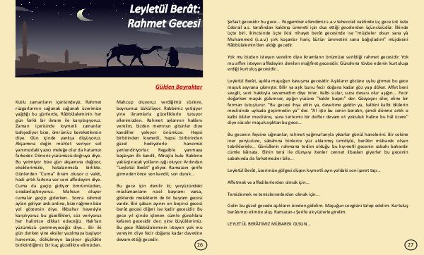 üçte biri, ikincisinde üçte ikisi nihayet berât gecesinde ise "müjdeler olsun sana yâ