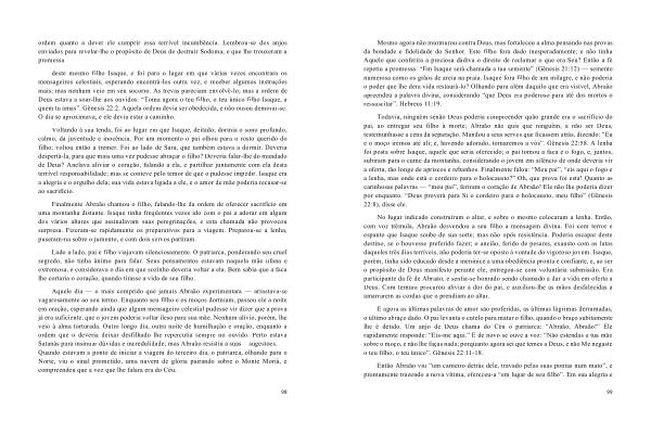 Voltando à sua tenda , foi ao lugar em que Isaque , deitado , dormia o sono profundo , calmo , da juventude e inocência . Por um momento o pai olhou para o rosto querido do filho ; voltou então a tremer . Foi ao lado de Sara , que também estava a dormir . Deveria despertá-la , para que mais uma vez pudesse abraçar o filho ? Deveria falar-lhe do mandado de Deus ? Anelava aliviar o coração , falando a ela , e partilhar juntamente com ela desta terrível responsabilidade ; mas se conteve pelo temor de que o pudesse impedir . Isaque era a alegria e o orgulho dela ; sua vida estava ligada a ele , e o amor de mãe poderia recusar-se ao sacrifício .