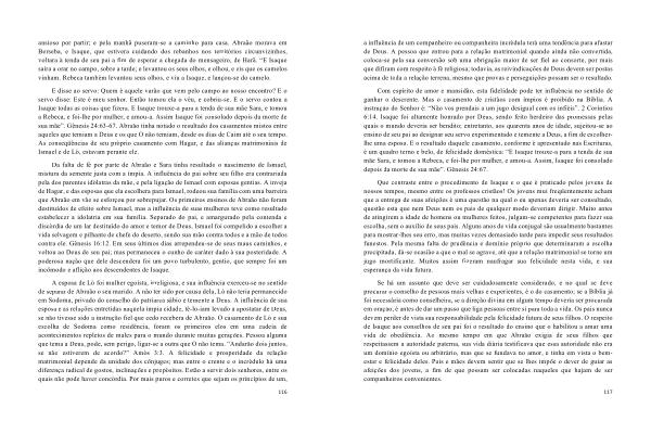 Com espírito de amor e mansidão , esta fidelidade pode ter influência no sentido de ganhar o descrente . Mas o casamento de cristãos com ímpios é proibido na Bíblia . A instrução do Senhor é : “ Não vos prendais a um jugo desigual com os infiéis ”. 2 Coríntios 6:14 . Isaque foi altamente honrado por Deus , sendo feito herdeiro das promessas pelas quais o mundo deveria ser bendito ; entretanto , aos quarenta anos de idade , sujeitou-se ao ensino de seu pai ao designar seu servo experimentado e temente a Deus , a fim de escolherlhe uma esposa . E o resultado daquele casamento , conforme é apresentado nas Escrituras , é um quadro terno e belo , de felicidade doméstica : “ E Isaque trouxe-a para a tenda de sua mãe Sara , e tomou a Rebeca , e foi-lhe por mulher , e amou-a . Assim , Isaque foi consolado depois da morte de sua mãe ”. Gênesis 24:67 .