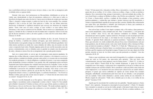 Jacó era o pastor-chefe ; os servos que ele empregava eram pastores-ajudantes . Se algumas das ovelhas faltavam , o pastor-chefe sofria o prejuízo ; e ele chamava os servos a quem confiara o cuidado do rebanho a prestar conta estrita , se o mesmo não era encontrado em condições prósperas . A vida de diligência e cuidados do pastor , e sua terna compaixão pelas desajudadas criaturas confiadas à sua guarda , têm sido empregadas pelos escritores inspirados para ilustrar algumas das verdades mais preciosas do evangelho . Cristo , em Sua relação para com Seu povo , é comparado a um pastor . Depois da queda viu Suas ovelhas condenadas a perecerem nos caminhos tenebrosos do pecado . Para salvar a esses seres errantes , deixou as honras e glórias da casa de Seu Pai . Diz Ele : “ A perdida buscarei , e a desgarrada tornarei a trazer , e a quebrada ligarei , e a enferma fortalecerei .” “ Eu livrarei as Minhas ovelhas , para que não sirvam mais de rapina ”, e “ a besta fera da terra nunca mais as comerá ”. Ezequiel 34:16 , 22 , 28 .