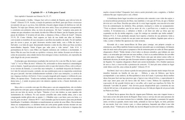 A lembrança deste lugar recordava ao patriarca não somente a sua visão dos anjos , e as misericordiosas promessas de Deus , mas também o voto que ali fizera , de que o Senhor deveria ser o seu Deus . Decidiu que antes de ir a esse lugar sagrado , sua casa deveria estar livre da contaminação da idolatria . Deu , portanto , instruções a todos no acampamento : “ Tirai os deuses estranhos , que há no meio de vós , e purificai-vos , e mudai os vossos vestidos . E levantemo-nos , e subamos a Betel ; e ali farei um altar ao Deus que me respondeu no dia da minha angústia , e que foi comigo no caminho que tenho andado ”. Gênesis 35:2 , 3 . Com profunda emoção Jacó repetiu a história de sua primeira visita a Betel , quando deixou a tenda de seu pai como um errante solitário , fugindo para salvar a vida , e como o Senhor lhe apareceu na visão noturna .