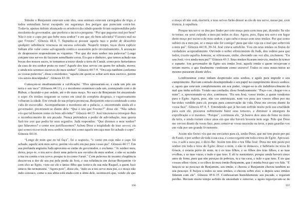 Começou-se imediatamente a verificação . “ Eles apressaram-se , e cada um pôs em terra o seu saco ” ( Gênesis 44:11 ), e o mordomo examinou cada um , começando com o de Rúben , e fazendo-o por ordem , até o do mais moço . No saco de Benjamim foi encontrado o copo . Os irmãos rasgaram as vestes em sinal de completa desgraça , e vagarosamente voltaram à cidade . Em virtude de sua própria promessa , Benjamim estava condenado a uma vida de escravidão . Acompanharam o mordomo até o palácio , e , encontrando ainda ali o governador , prostraram-se diante dele : “ Que é isto que fizestes ?” disse ele . “ Não sabeis vós que tal homem como eu bem adivinha ?” Gênesis 44:15 . José tencionava extorquir-lhes o reconhecimento de seu pecado . Nunca pretendera o poder de adivinhação , mas queria fazê-los crer que podia ler seus segredos . Judá respondeu : “ Que diremos a meu senhor ? que falaremos ? e como nos justificaremos ? Achou Deus a iniqüidade de teus servos ; eis que somos escravos de meu senhor , tanto nós como aquele em cuja mão foi achado o copo ”. Gênesis 44:16 .