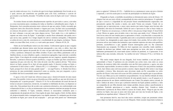 Chegando ao Egito , a multidão encaminhou-se diretamente para a terra de Gósen . Ali chegou José em seu carro oficial , acompanhado de uma comitiva principesca . O esplendor do que o cercava e a dignidade de sua posição foram semelhantemente esquecidos ; um pensamento apenas lhe enchia a mente , um anelo fremia seu coração . Vendo ele os viajantes que se aproximavam , o amor cujos anseios por tantos longos anos haviam sido reprimidos , não mais foi dominado . Saltou do carro e apressou-se a dar as boas-vindas ao pai . E “ lançouse ao seu pescoço , e chorou sobre o seu pescoço longo tempo . E Israel disse a José : Morra eu agora , pois já tenho visto o teu rosto , que ainda vives ”. Gênesis 46:30 . José levou cinco de seus irmãos para os apresentar a Faraó , e recebeu dele a concessão da terra para a sua futura morada . A gratidão para com o seu primeiro-ministro teria levado o rei a honrá- los , designando-os para cargos de Estado ; José , porém , fiel ao culto a Jeová , procurou salvar seus irmãos das tentações a que estariam expostos em uma corte gentílica ; portanto , aconselhou-os a que , quando fossem interrogados pelo rei , lhe contassem francamente sua ocupação . Os filhos de Jacó seguiram este conselho , tendo também o cuidado de declarar que tinham vindo para peregrinar na terra , não para se tornarem habitantes permanentes ali , reservando assim o direito de partirem , se o quisessem . O rei indicou-lhes uma morada , oferecida “ no melhor da terra ” ( Gênesis 47:6 ), o território de Gósen .