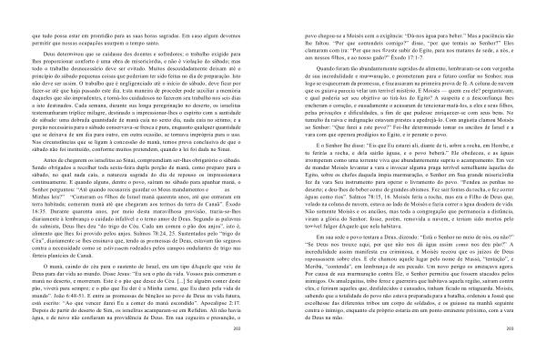 Deus determinou que se cuidasse dos doentes e sofredores ; o trabalho exigido para lhes proporcionar conforto é uma obra de misericórdia , e não é violação do sábado ; mas todo o trabalho desnecessário deve ser evitado . Muitos descuidadamente deixam até o princípio do sábado pequenas coisas que poderiam ter sido feitas no dia de preparação . Isto não deve ser assim . O trabalho que é negligenciado até o início do sábado , deve ficar por fazer-se até que haja passado este dia . Esta maneira de proceder pode auxiliar a memória daqueles que são imprudentes , e torná-los cuidadosos no fazerem seu trabalho nos seis dias a isto destinados . Cada semana , durante sua longa peregrinação no deserto , os israelitas testemunharam tríplice milagre , destinado a impressionar-lhes o espírito com a santidade do sábado : uma dobrada quantidade de maná caía no sexto dia , nada caía no sétimo , e a porção necessária para o sábado conservava-se fresca e pura , enquanto qualquer quantidade que se deixava de um dia para outro , em outra ocasião , se tornava imprópria para o uso . Nas circunstâncias que se ligam à concessão do maná , temos prova conclusiva de que o sábado não foi instituído , conforme muitos pretendem , quando a lei foi dada no Sinai .