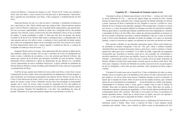 Nada perceberam em sua voz a não ser amor e solicitude , e finalmente aventurou-se um a aproximar-se dele . Muito atônito para que pudesse falar , silenciosamente apontou para o rosto de Moisés e então para o céu . O grande chefe compreendeu o que queria dizer . Em sua consciente culpabilidade , sentindo-se ainda sob o desagrado divino , não podiam suportar a luz celestial , a qual , se houvessem eles sido obedientes a Deus , tê-los-ia enchido de alegria . O medo acompanha a culpa . A alma que está livre de pecado não deseja esconder-se da luz do Céu . Moisés tinha muito a comunicar-lhes ; e , compadecendo-se de seus temores , pôs um véu sobre o rosto , e continuou a fazer assim dali em diante sempre que voltava ao acampamento depois de ter comunhão com Deus . Por essa luz era o intuito de Deus impressionar Israel com o caráter sagrado e exaltado de Sua lei , e a glória do evangelho revelado por meio de Cristo . [...]