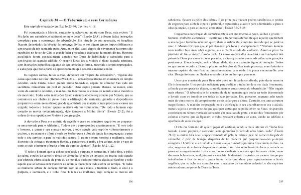 Uma casa construída para Deus não deve ser deixada em dívida , pois desta maneira Ele é desonrado . Uma porção suficiente para realizar o trabalho deve ser dada livremente , a fim de que os operários digam , como fizeram os construtores do tabernáculo : “ Não tragais mais ofertas .” O tabernáculo foi construído de tal maneira que podia ser todo desmontado e levado com os israelitas em todas as suas jornadas . Era , portanto , pequeno , não tendo mais de vinte metros de comprimento , e seis de largura e altura . Contudo , era uma estrutura magnificente . A madeira empregada para a edificação e seu aparelhamento era a acácia , menos sujeita a arruinar-se do que qualquer outra que se podia obter no Sinai . As paredes consistiam em tábuas verticais colocadas em encaixes de prata , e mantidas firmemente por colunas e barras que as ligavam ; e todas estavam cobertas de ouro , dando ao edifício a aparência de ouro maciço .