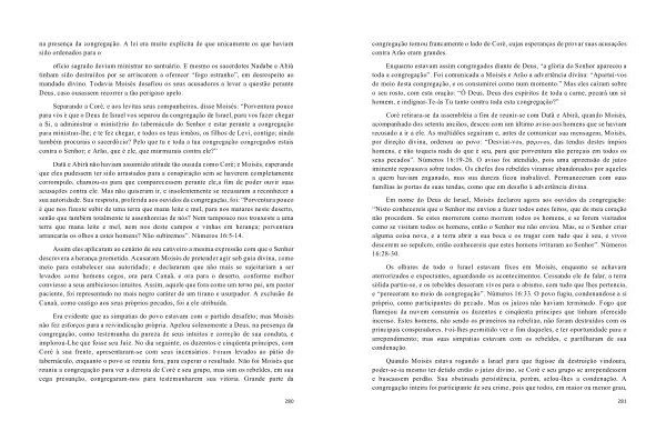 Os olhares de todo o Israel estavam fixos em Moisés , enquanto se achavam aterrorizados e expectantes , aguardando os acontecimentos . Cessando ele de falar , a terra sólida partiu-se , e os rebeldes desceram vivos para o abismo , com tudo que lhes pertencia , e “ pereceram no meio da congregação ”. Números 16:33 . O povo fugiu , condenandose a si próprio , como participantes do pecado . Mas os juízos não haviam terminado . Fogo que flamejou da nuvem consumiu os duzentos e cinqüenta príncipes que tinham oferecido incenso . Estes homens , não sendo os primeiros na rebelião , não foram destruídos com os principais conspiradores . Foi-lhes permitido ver o fim daqueles , e ter oportunidade para o arrependimento ; mas suas simpatias estavam com os rebeldes , e partilharam de sua condenação .