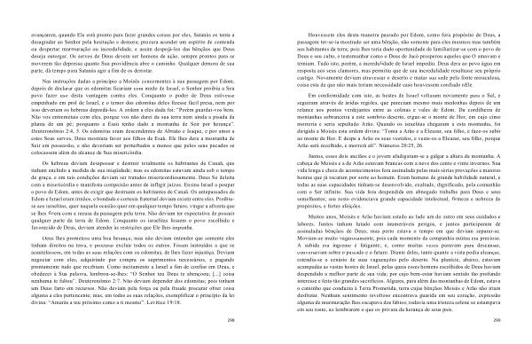 Muitos anos , Moisés e Arão haviam estado ao lado um do outro em seus cuidados e labores . Juntos tinham lutado com inumeráveis perigos , e juntos participaram de assinaladas bênçãos de Deus ; mas perto estava o tempo em que deviam separar-se . Moviam-se muito vagarosamente , pois cada momento da companhia mútua era precioso . A subida era íngreme e fatigante ; e , como muitas vezes paravam para descansar , conversavam sobre o passado e o futuro . Diante deles , tanto quanto a vista podia alcançar , estendia-se o cenário de suas vagueações pelo deserto . Na planície , abaixo , estavam acampadas as vastas hostes de Israel , pelas quais esses homens escolhidos de Deus haviam despendido a melhor parte de sua vida ; por cujo bem-estar haviam sentido tão profundo interesse e feito tão grandes sacrifícios . Algures , para além das montanhas de Edom , estava o caminho que conduzia à Terra Prometida , terra cujas bênçãos Moisés e Arão não iriam desfrutar . Nenhum sentimento revoltoso encontrava guarida em seu coração , expressão alguma de murmuração lhes escapava dos lábios ; todavia uma tristeza solene se estampava em seu rosto , ao lembrarem o que os privara da herança de seus pais .