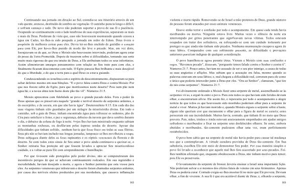 Foi divinamente ordenado a Moisés fazer uma serpente de metal , assemelhando-se às serpentes vivas , e erguê-la entre o povo . Para esta todos os que haviam sido feridos deviam olhar , e encontrariam alívio . Ele assim fez , e repercutiu por todo o acampamento a alegre notícia de que todos os que houvessem sido mordidos poderiam olhar para a serpente de metal e viver . Muitos já haviam morrido e , quando Moisés ergueu a serpente sobre a haste , alguns não queriam crer que meramente o olhar para a figura de metal os curaria ; estes pereceram em sua incredulidade . Muitos havia , contudo , que tinham fé no meio que Deus provera . Pais , mães , irmãos e irmãs estavam ansiosamente empenhados em ajudar amigos sofredores e moribundos a fixar na serpente seus desfalecidos olhares . Se estes , embora abatidos e moribundos , tão-somente pudessem olhar uma vez , eram perfeitamente restabelecidos .