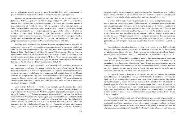 As contribuições exigidas dos hebreus para fins religiosos e caritativos , montavam a uma quarta parte completa de suas rendas . Uma taxa tão pesada sobre os recursos do povo poder-se-ia esperar que os reduzisse à pobreza ; mas , ao contrário , a fiel observância destes estatutos era uma das condições de sua prosperidade . Sob a condição de sua obediência , Deus lhes fez esta promessa : “ Por causa de vós repreenderei o devorador , para que não vos consuma o fruto da terra ; e a vide no campo vos não será estéril . [...] E todas as nações vos chamarão bem-aventurados ; porque vós sereis uma terra deleitosa , diz o Senhor dos exércitos ”. Malaquias 3:11 , 12 .