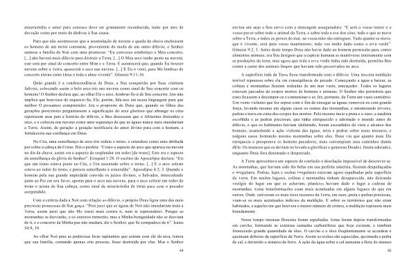 Com a certeza dada a Noé com relação ao dilúvio , o próprio Deus ligou uma das mais preciosas promessas de Sua graça : “ Pois jurei que as águas de Noé não inundariam mais a Terra ; assim jurei que não Me irarei mais contra ti , nem te repreenderei . Porque as montanhas se desviarão , e os outeiros tremerão ; mas a Minha benignidade não se desviará de ti , e o concerto da Minha paz não mudará , diz o Senhor , que Se compadece de ti ”. Isaías 54:9 , 10 .