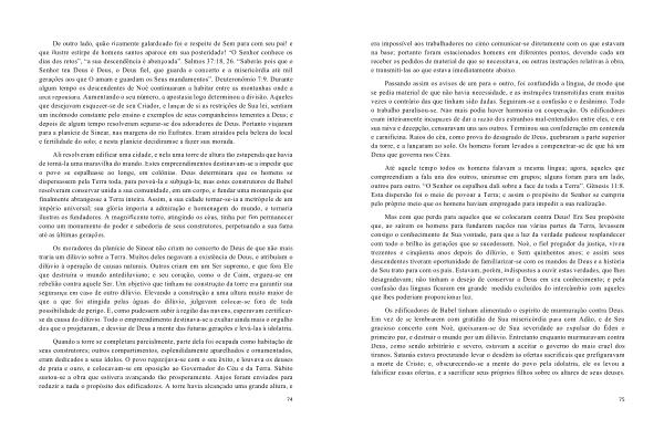 De outro lado , quão ricamente galardoado foi o respeito de Sem para com seu pai ! e que ilustre estirpe de homens santos aparece em sua posteridade ! “ O Senhor conhece os dias dos retos ”, “ a sua descendência é abençoada ”. Salmos 37:18 , 26 . “ Saberás pois que o Senhor teu Deus é Deus , o Deus fiel , que guarda o concerto e a misericórdia até mil gerações aos que O amam e guardam os Seus mandamentos ”. Deuteronômio 7:9 . Durante algum tempo os descendentes de Noé continuaram a habitar entre as montanhas onde a arca repousara . Aumentando o seu número , a apostasia logo determinou a divisão . Aqueles que desejavam esquecer-se de seu Criador , e lançar de si as restrições de Sua lei , sentiam um incômodo constante pelo ensino e exemplos de seus companheiros tementes a Deus ; e depois de algum tempo resolveram separar-se dos adoradores de Deus . Portanto viajaram para a planície de Sinear , nas margens do rio Eufrates . Eram atraídos pela beleza do local e fertilidade do solo ; e nesta planície decidiramse a fazer sua morada .