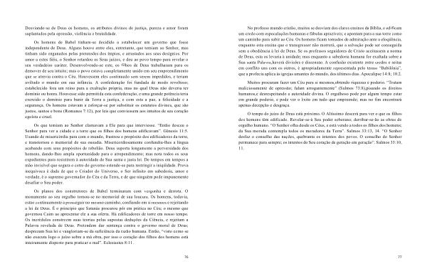 Os planos dos construtores de Babel terminaram com vergonha e derrota . O monumento ao seu orgulho tornou-se no memorial de sua loucura . Os homens , todavia , estão continuamente a prosseguir no mesmo caminho , confiando em si mesmos e rejeitando a lei de Deus . É o princípio que Satanás procurou pôr em prática no Céu ; o mesmo que governou Caim ao apresentar ele a sua oferta . Há edificadores de torre em nosso tempo . Os incrédulos constroem suas teorias pelas supostas deduções da Ciência , e rejeitam a Palavra revelada de Deus . Pretendem dar sentença contra o governo moral de Deus ; desprezam Sua lei e vangloriam-se da suficiência da razão humana . Então , “ visto como se não executa logo o juízo sobre a má obra , por isso o coração dos filhos dos homens está inteiramente disposto para praticar o mal ”. Eclesiastes 8:11 .
