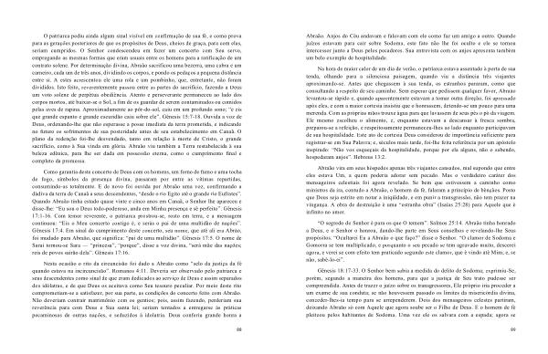 O patriarca pediu ainda algum sinal visível em confirmação de sua fé , e como prova para as gerações posteriores de que os propósitos de Deus , cheios de graça , para com elas , seriam cumpridos . O Senhor condescendeu em fazer um concerto com Seu servo , empregando as mesmas formas que eram usuais entre os homens para a ratificação de um contrato solene . Por determinação divina , Abraão sacrificou uma bezerra , uma cabra e um carneiro , cada um de três anos , dividindo os corpos , e pondo os pedaços a pequena distância entre si . A estes acrescentou ele uma rola e um pombinho , que , entretanto , não foram divididos . Isto feito , reverentemente passou entre as partes do sacrifício , fazendo a Deus um voto solene de perpétua obediência . Atento e perseverante permaneceu ao lado dos corpos mortos , até baixar-se o Sol , a fim de os guardar de serem contaminados ou comidos pelas aves de rapina . Aproximadamente ao pôr-do-sol , caiu em um profundo sono ; “ e eis que grande espanto e grande escuridão caiu sobre ele ”. Gênesis 15:7-18 . Ouvida a voz de Deus , ordenando-lhe que não esperasse a posse imediata da terra prometida , e indicando no futuro os sofrimentos de sua posteridade antes de seu estabelecimento em Canaã . O plano da redenção foi-lhe desvendado , tanto em relação à morte de Cristo , o grande sacrifício , como à Sua vinda em glória . Abraão viu também a Terra restabelecida à sua beleza edênica , para lhe ser dada em possessão eterna , como o cumprimento final e completo da promessa .