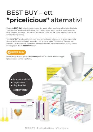 Våre BEST BUY-produkter kombinerer kvalitet med gode priser og er et smart og rimelig alternativ til andre merker på markedet – det er det vi kaller ” Pricelicious ”. Dessuten er våre BEST BUY-produkter lagervarer ! Selvfølgelig er våre egne merker PoloDent og Yellow Point også en del av BEST BUY-serien .