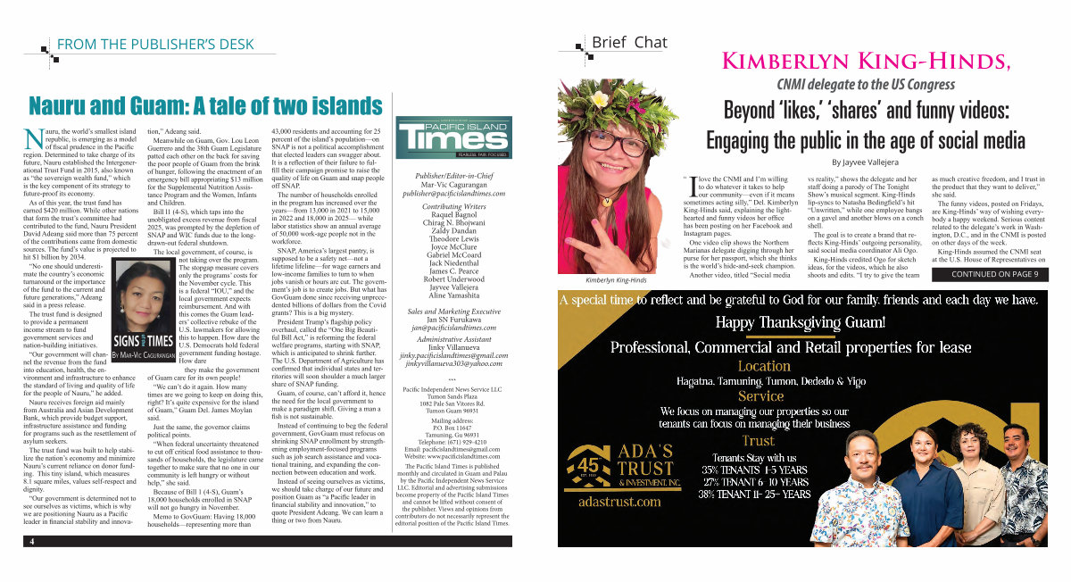 CNMI delegate to the US Congress Beyond‘ likes,’‘ shares’ and funny videos: Engaging the public in the age of social media By Jayvee Vallejera