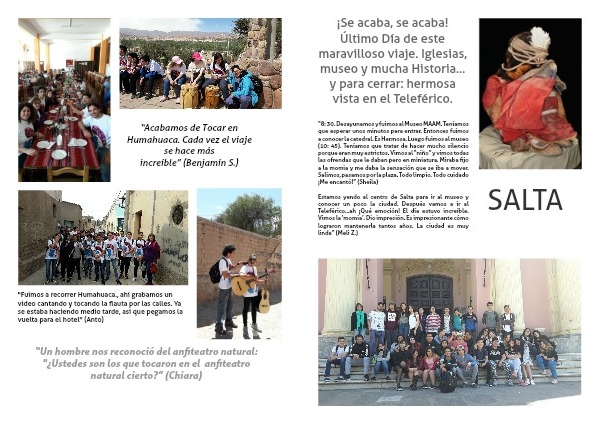 Estamos yendo al centro de Salta para ir al museo y conocer un poco la ciudad. Después vamos a ir al Teleférico…ah ¡Qué emoción! El día estuvo increíble. Vimos la ‘momia’. Dio impresión. Es impresionante cómo lograron mantenerla tantos años. La ciudad es muy linda” (Meli Z.)