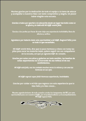 Nuestro agradecimiento de todo corazón a todos los integrantes del IEC por esta oportunidad para con nuestros hij@s, por el profesionalismo y el acompañamiento. Mi hij@ regresó feliz.