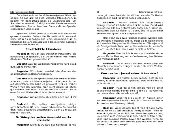 Fragender: Was ist aus weltlicher Perspektive die Bedeutung der Spenden, die du im Namen von Hiraba( Dadashris Ehefrau) gemacht hast?