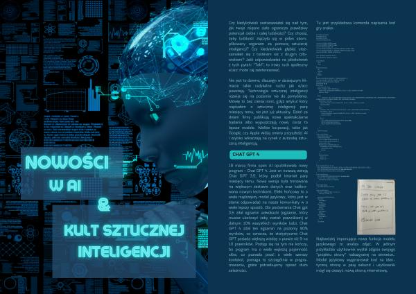 18 marca firma open AI opublikowała nowy program - Chat GPT 4 . Jest on nowszą wersją Chat GPT 3.5 , który podbił Internet parę miesięcy temu . Nowa wersja była trenowana na większym zestawie danych oraz kalibrowana nowym technikami . Efekt końcowy to o wiele mądrzejszy model językowy , który jest w stanie odpowiadać na nasze komunikaty w o wiele lepszy sposób . Dla porównania Chat gpt 3.5 zdał egzamin adwokacki ( egzamin , który musisz ukończyć żeby zostać prawnikiem ) w dolnym 10 % wszystkich wyników ludzi . Chat GPT 4 zdał ten egzamin na poziomy 90 % wyników , co oznacza , że statystycznie Chat GPT posiada większą wiedzę o prawie niż 9 na 10 prawników . Postęp się na tym nie kończy , bo program ma o wiele większą pojemność słów , co pozwala pisać o wiele szerszy kontekst , pomaga to szczególnie w programowaniu , gdzie potrzebujemy opisać dużo zależności .