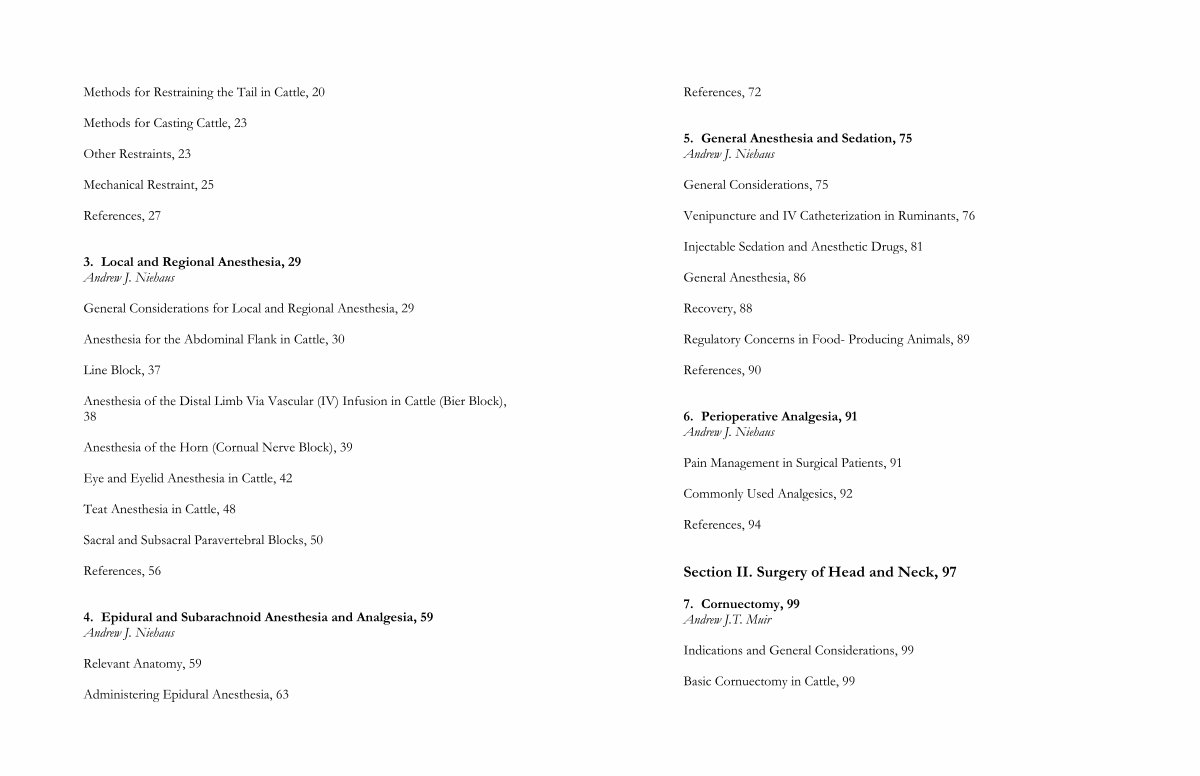 Anesthesia of the Horn( Cornual Nerve Block), 39 Eye and Eyelid Anesthesia in Cattle, 42 Teat Anesthesia in Cattle, 48 Sacral and Subsacral Paravertebral Blocks, 50 References, 56