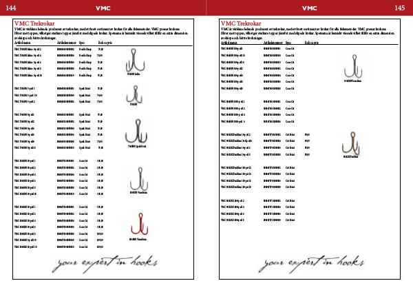 VMC är världens ledande producent av trekrokar, med ett brett sortiment av krokar för alla fiskemetoder. VMC pressar krokens fibrer mot toppen, vilket ger starkare toppar jämfört med slipade krokar. Spetsarna är kemiskt vässade vilket tillför en extra dimension av skärpa och bättre krokningar.