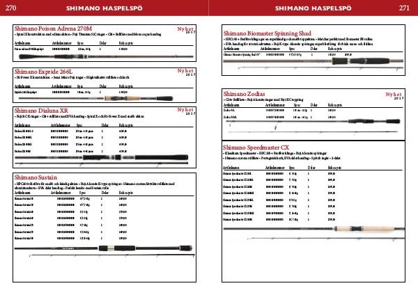 Shimano Speedmaster CX 210ML 0000343200000000 7’, 7-21g 2 2099,00 Shimano Speedmaster CX 240M 0000343300000000 8’, 7-28g 2 2299,00 Shimano Speedmaster CX 240MH 0000343400000000 8’, 14-42g 2 2399,00 Shimano Speedmaster CX 270ML 0000343500000000 9’, 7-21g 2 2599,00 Shimano Speedmaster CX 270M 0000343600000000 9’, 7-28g 2 2599,00