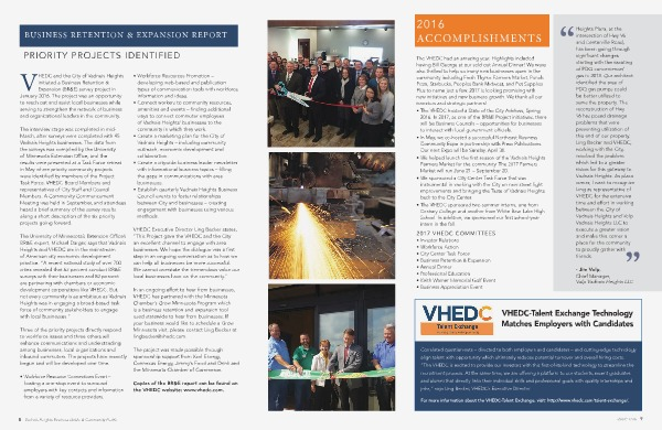 VHEDC and the City of Vadnais Heights initiated a Business Retention & Expansion( BR & E) survey project in January 2016. The project was an opportunity to reach out and assist local businesses while serving to strengthen the network of business and organizational leaders in the community.